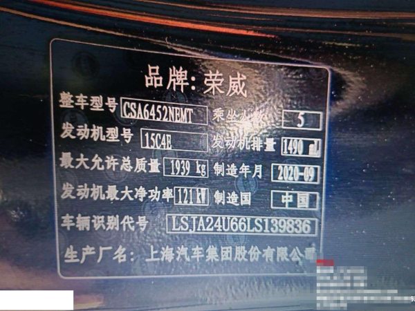 初次登记日期 2020-10-30 车辆名称 荣威RX5