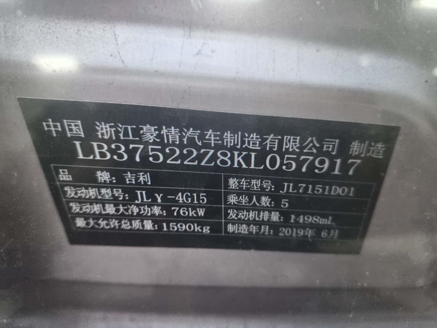 初次登记日期 2019-08-02 车辆名称 吉利汽车