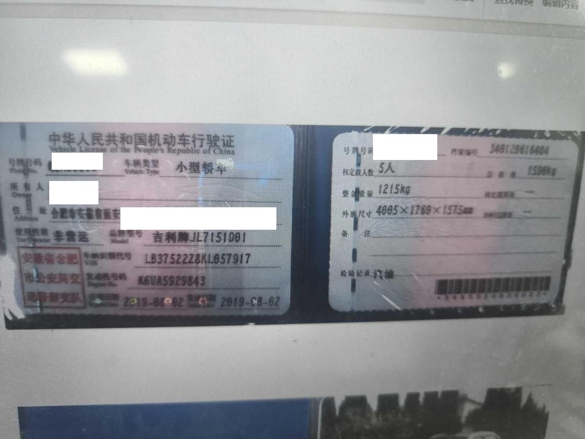 车牌号 皖****** 品牌 吉利