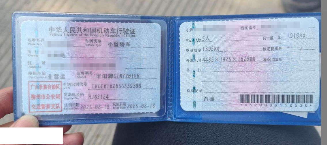 初次登记日期 2025-08-18 车辆名称 丰田 锋兰达