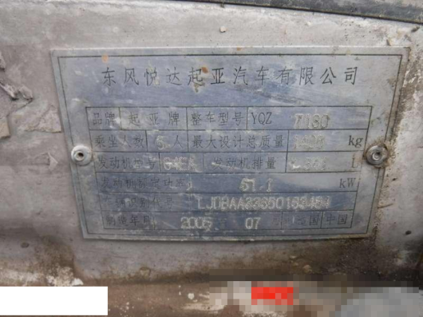 初次登记日期 2005-09-06 车辆名称 起亚 千里马