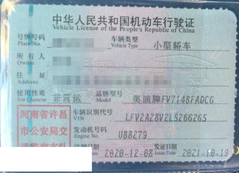 车辆归属地 河南省许昌市 车辆停放仓库 河南省许昌市