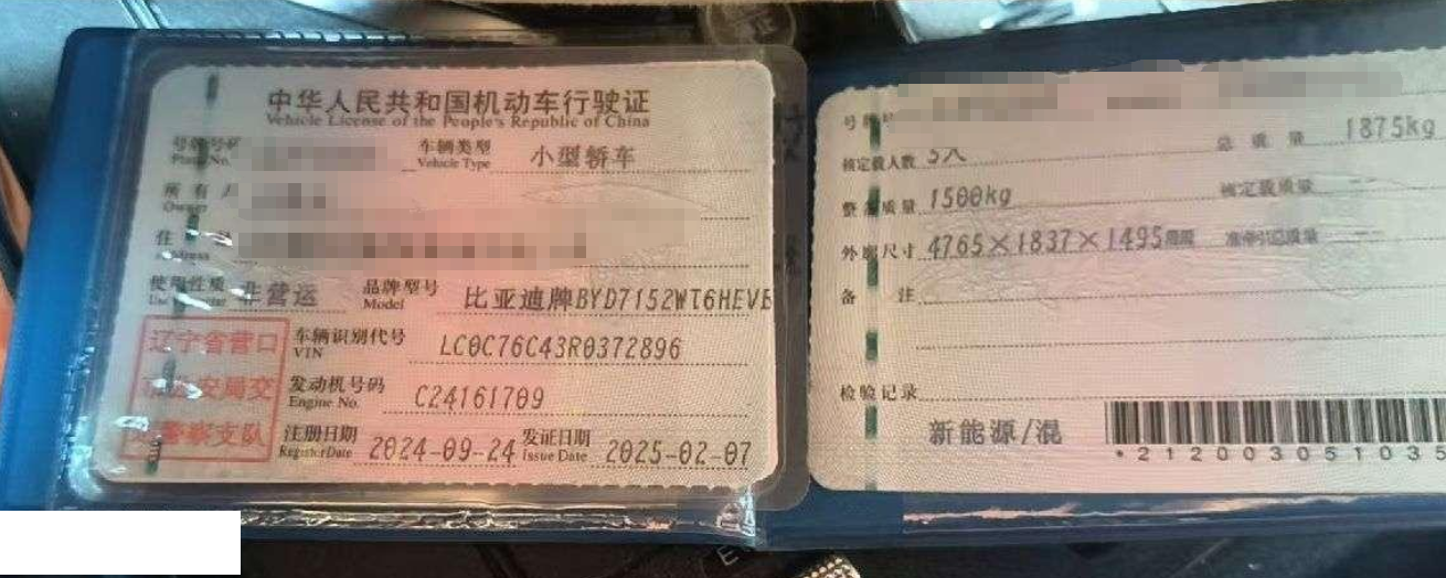 车牌号 辽****** 品牌 比亚迪