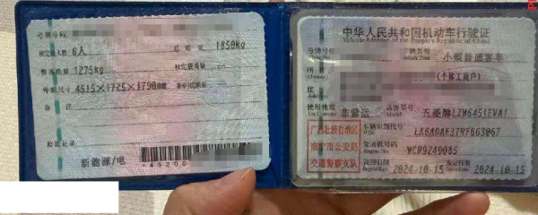 初次登记日期 2024-10-15 车辆名称 五菱汽车 五菱宏光新能源