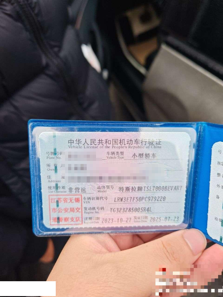 初次登记日期 2023-10-27 车辆名称 特斯拉 Model