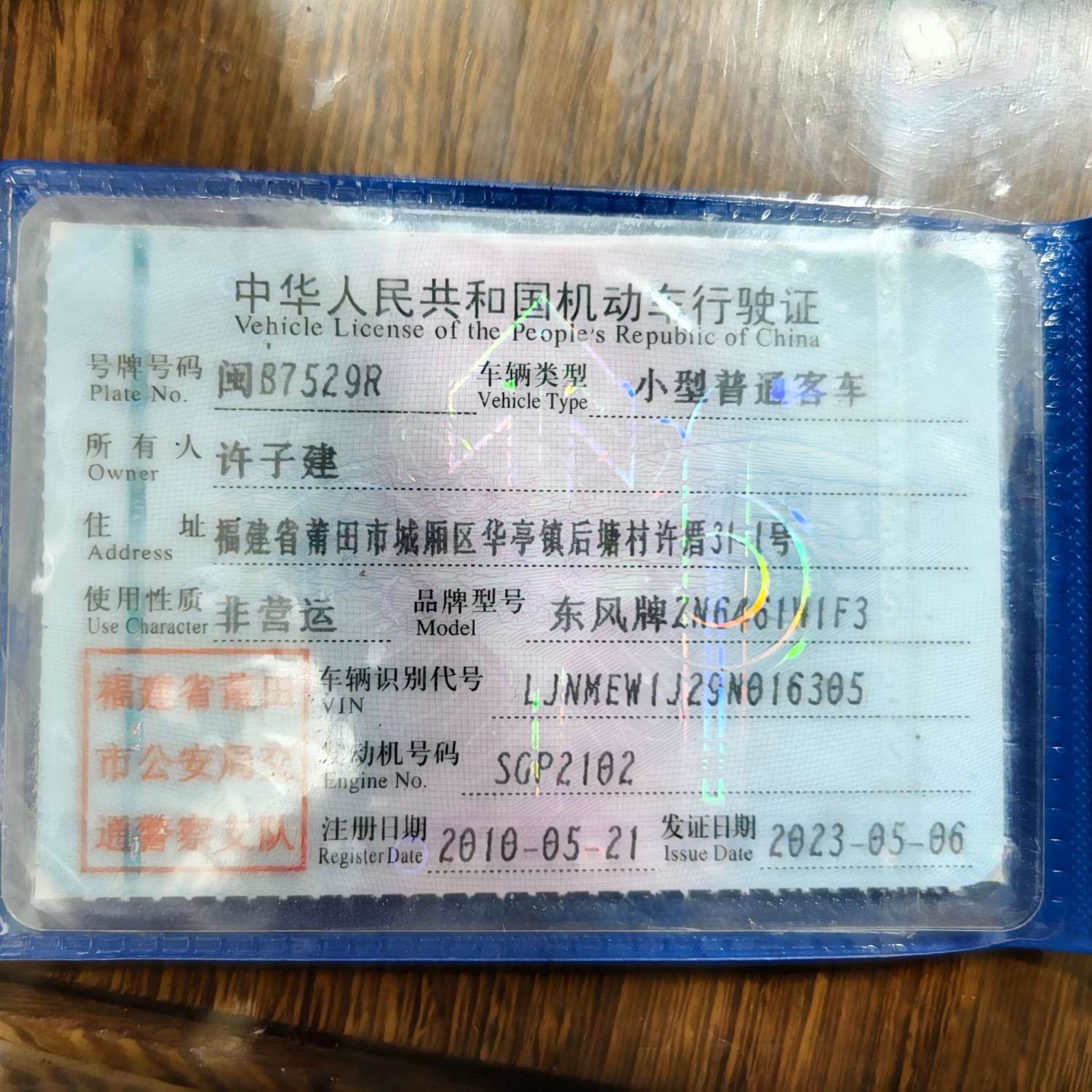 车牌号 闽****** 品牌 东风