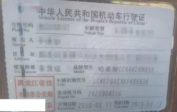 初次登记日期 2019-04-19 车辆名称 哈弗M6