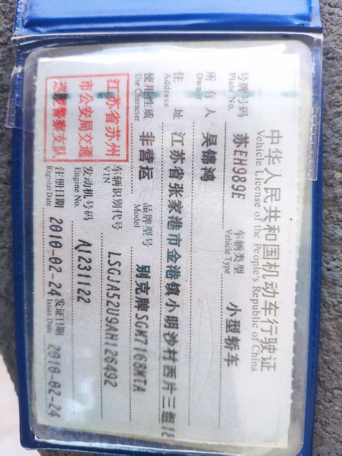 车辆归属地 江苏省苏州市 车辆停放仓库 江苏省张家港市张家港市