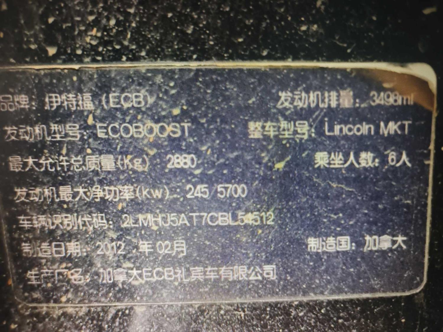 初次登记日期 2013-01-23 车辆名称 林肯MKT