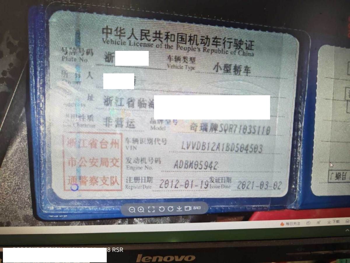 车牌号 浙****** 品牌 奇瑞
