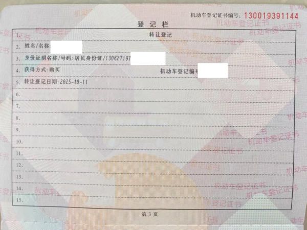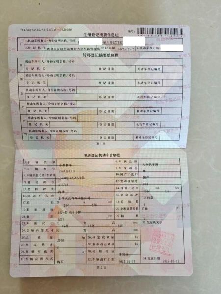 初次登记日期 2025-10-15 车辆名称 大众 帕萨特