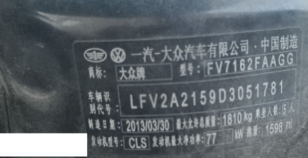 初次登记日期 2013-05-09 车辆名称 大众 宝来