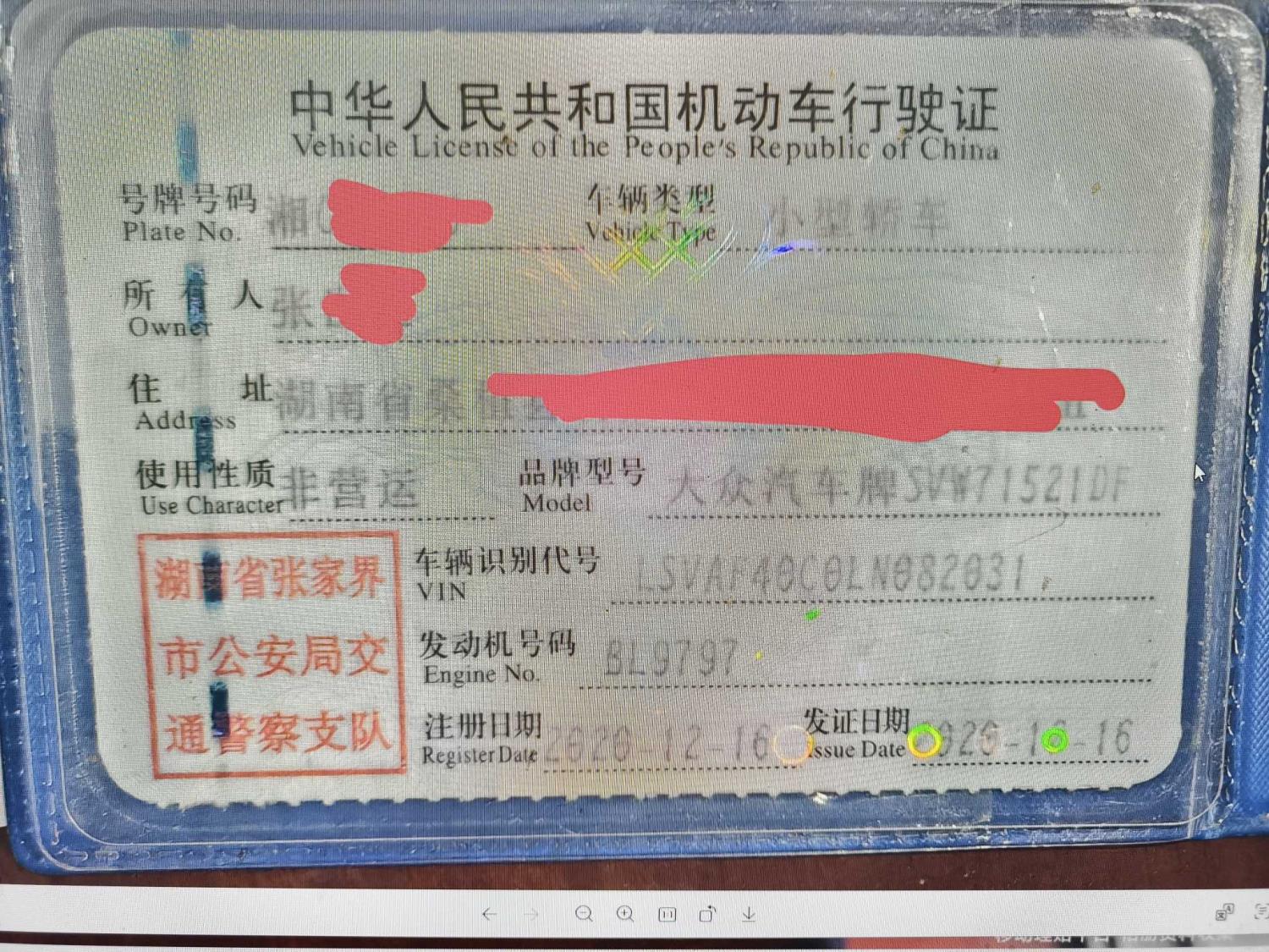 初次登记日期 2020-12-16 车辆名称 大众 朗逸