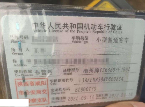 车辆归属地 陕西省咸阳 车辆停放仓库 陕西省咸阳