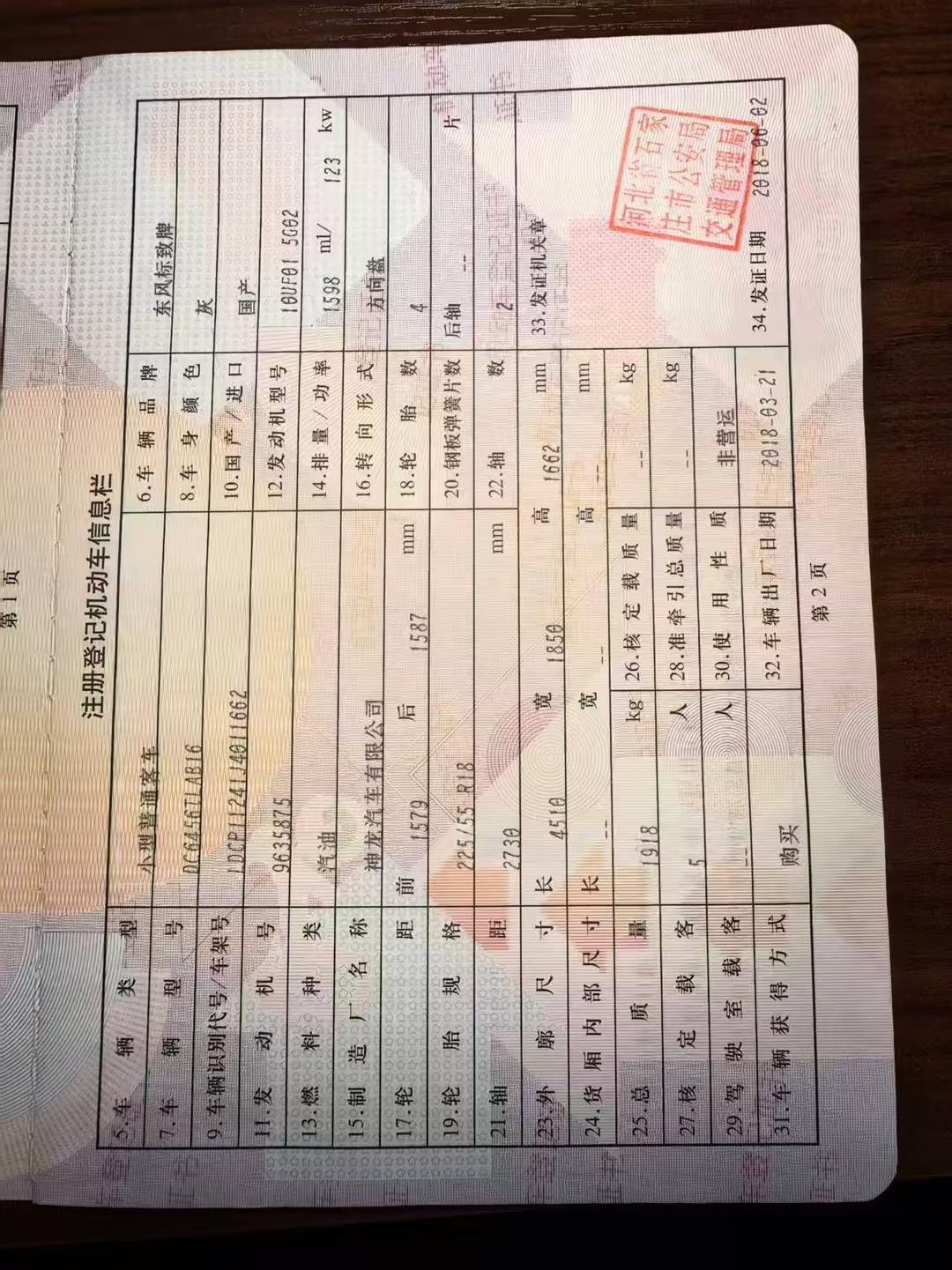 车牌号 冀****** 品牌 东风标致