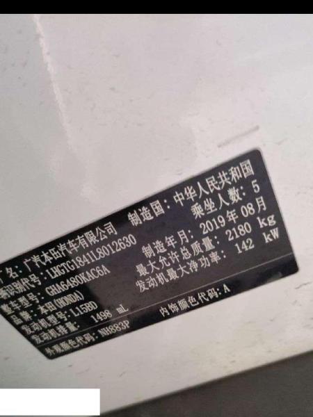 底盘号码 LHGTG1841L8012630 变速箱类型 自动