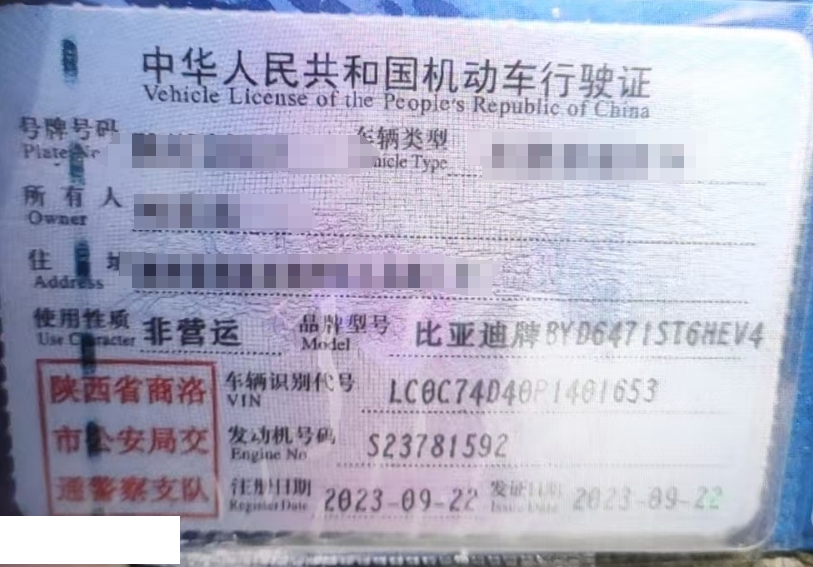 车牌号 陕****** 品牌 比亚迪