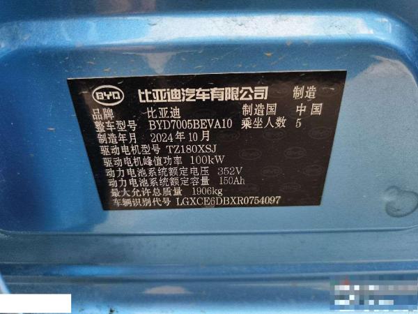 初次登记日期 2024-11-26 车辆名称 比亚迪 秦新能源