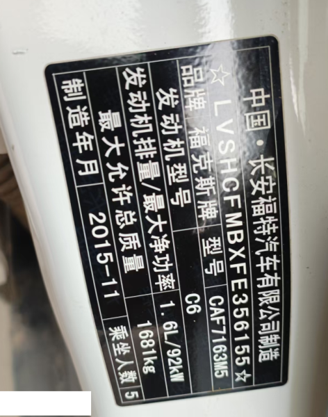 底盘号码 LVSHCFMBXFE356155 变速箱类型 手动