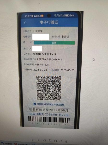 初次登记日期 2023-05-23 车辆名称 零跑汽车 零跑