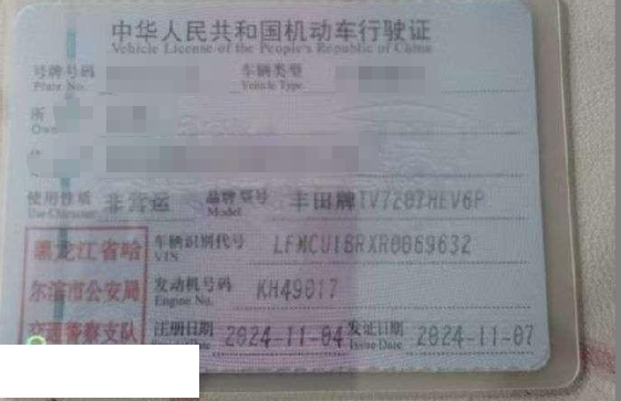 车辆归属地 黑龙江省哈尔滨 车辆停放仓库 黑龙江省哈尔滨