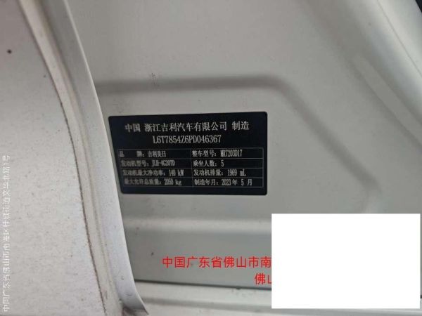 初次登记日期 2023-09-05 车辆名称 吉利汽车 星瑞