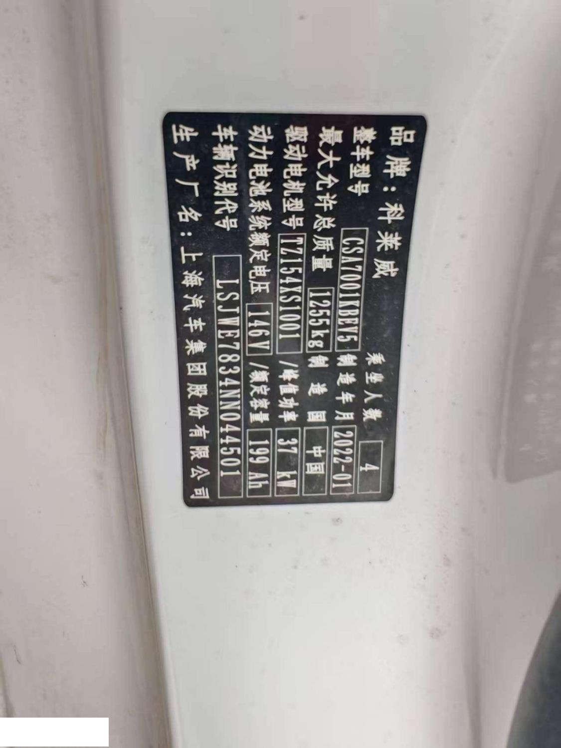 初次登记日期 2022-03-26 车辆名称 荣威 科莱威