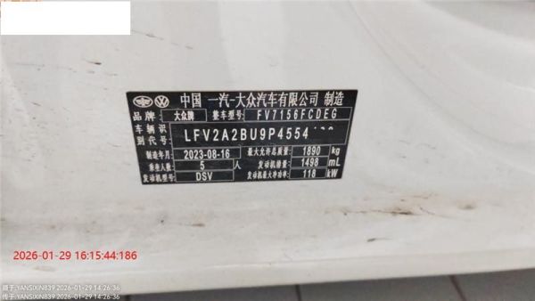 初次登记日期 2023-09-14 车辆名称 大众 速腾