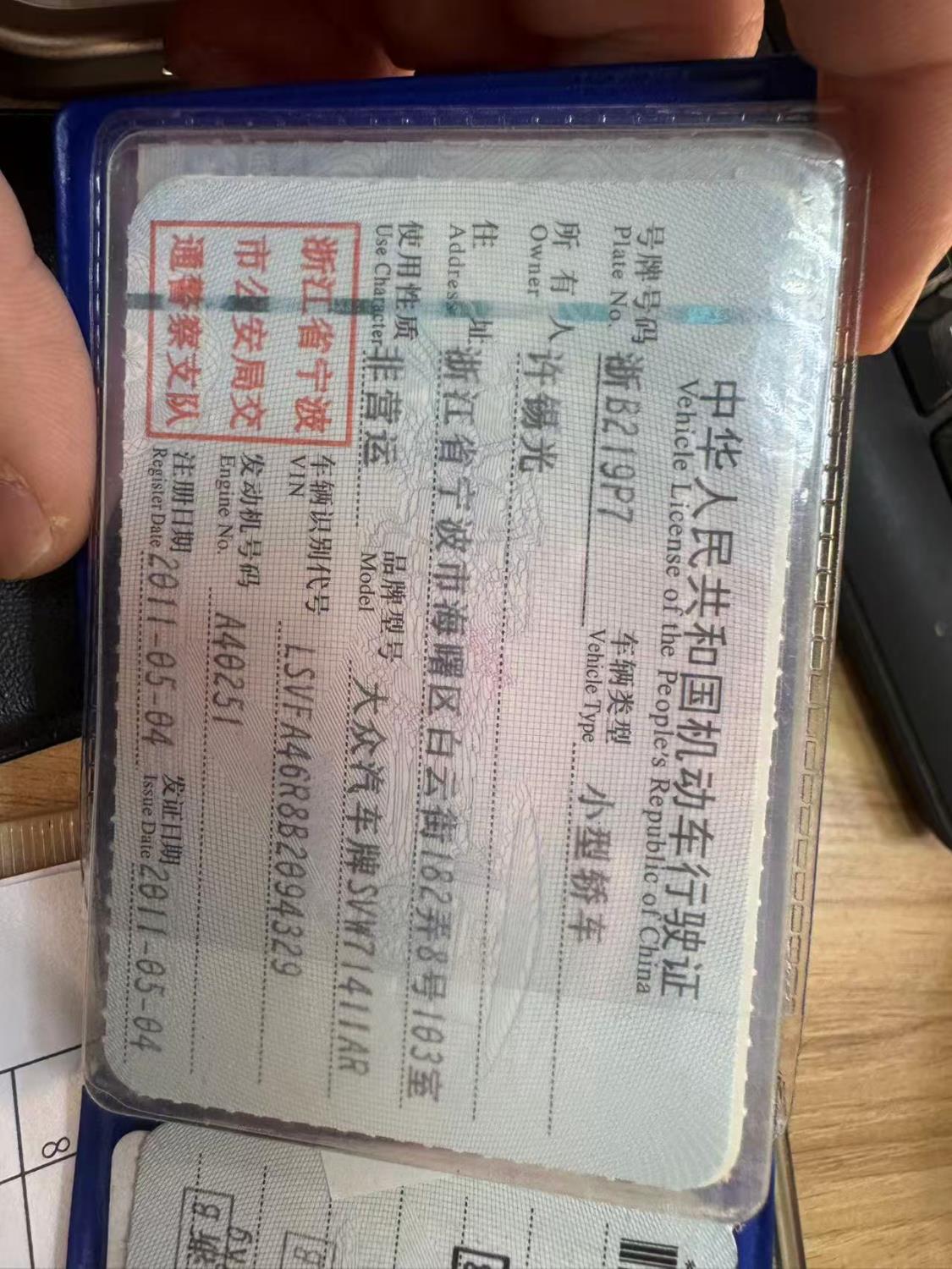 车辆归属地 浙江省宁波市 车辆停放仓库 浙江省宁波市宁波市