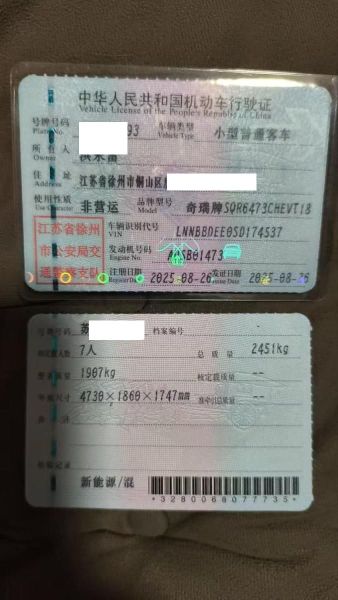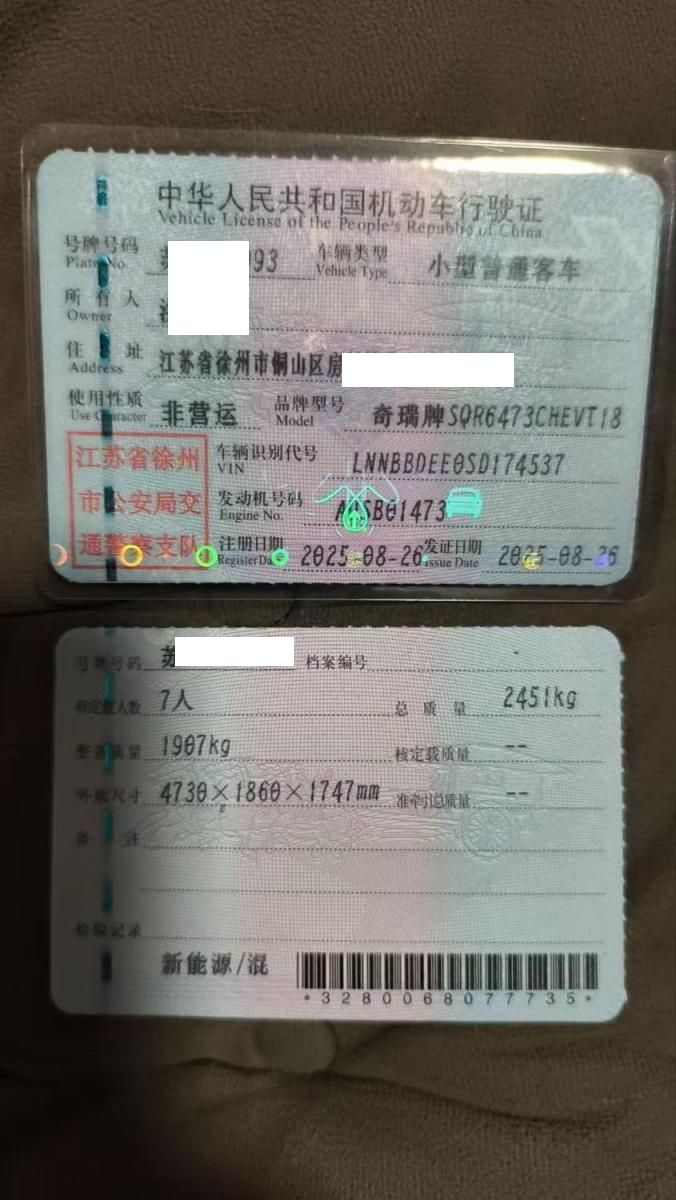 初次登记日期 2025-08-26 车辆名称 奇瑞风云