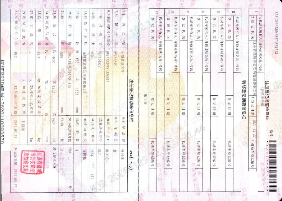 车牌号 苏****** 品牌 保时捷