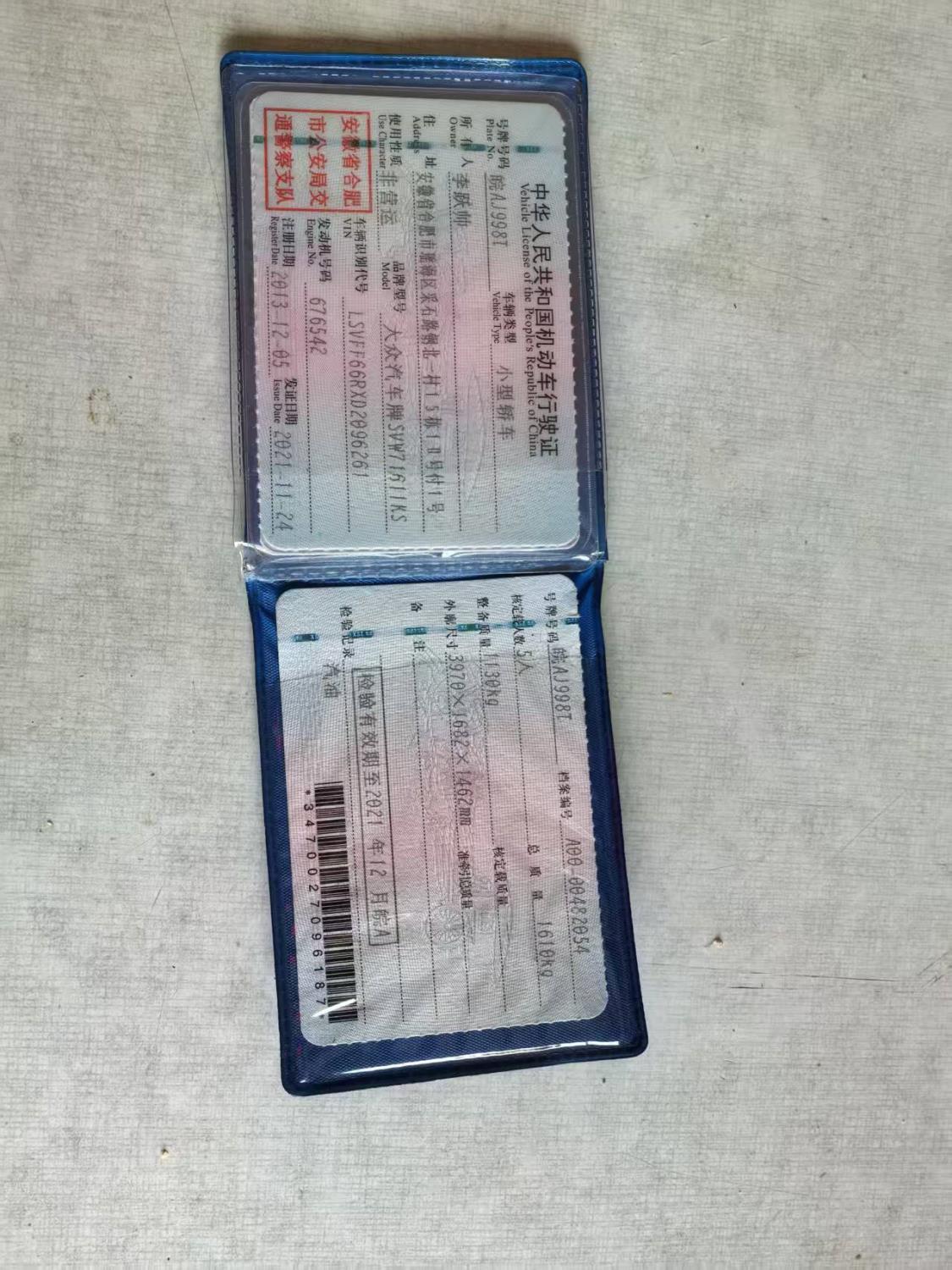 车牌号 皖****** 品牌 大众