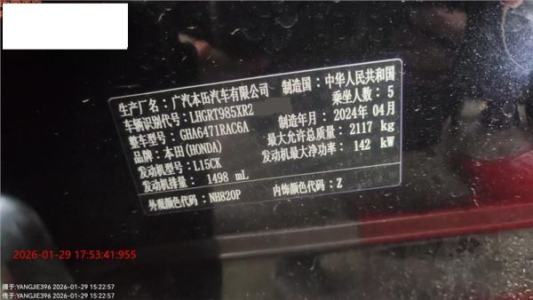 车牌号 鄂****** 品牌 本田