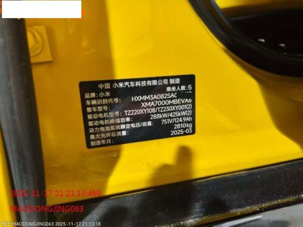 初次登记日期 2025-04-02 车辆名称 小米汽车