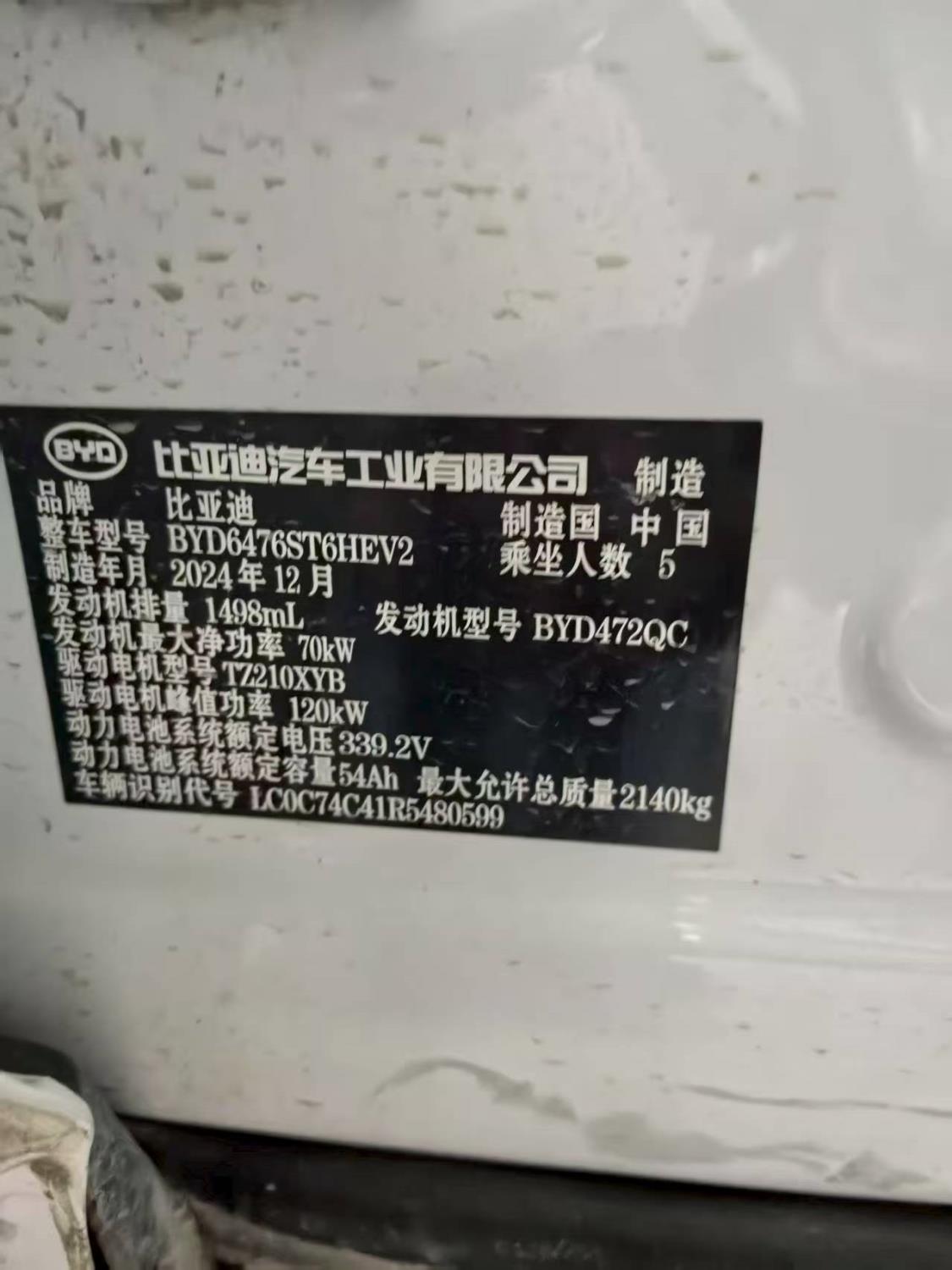 初次登记日期 2024-12-28 车辆名称 比亚迪 宋Pro新能源