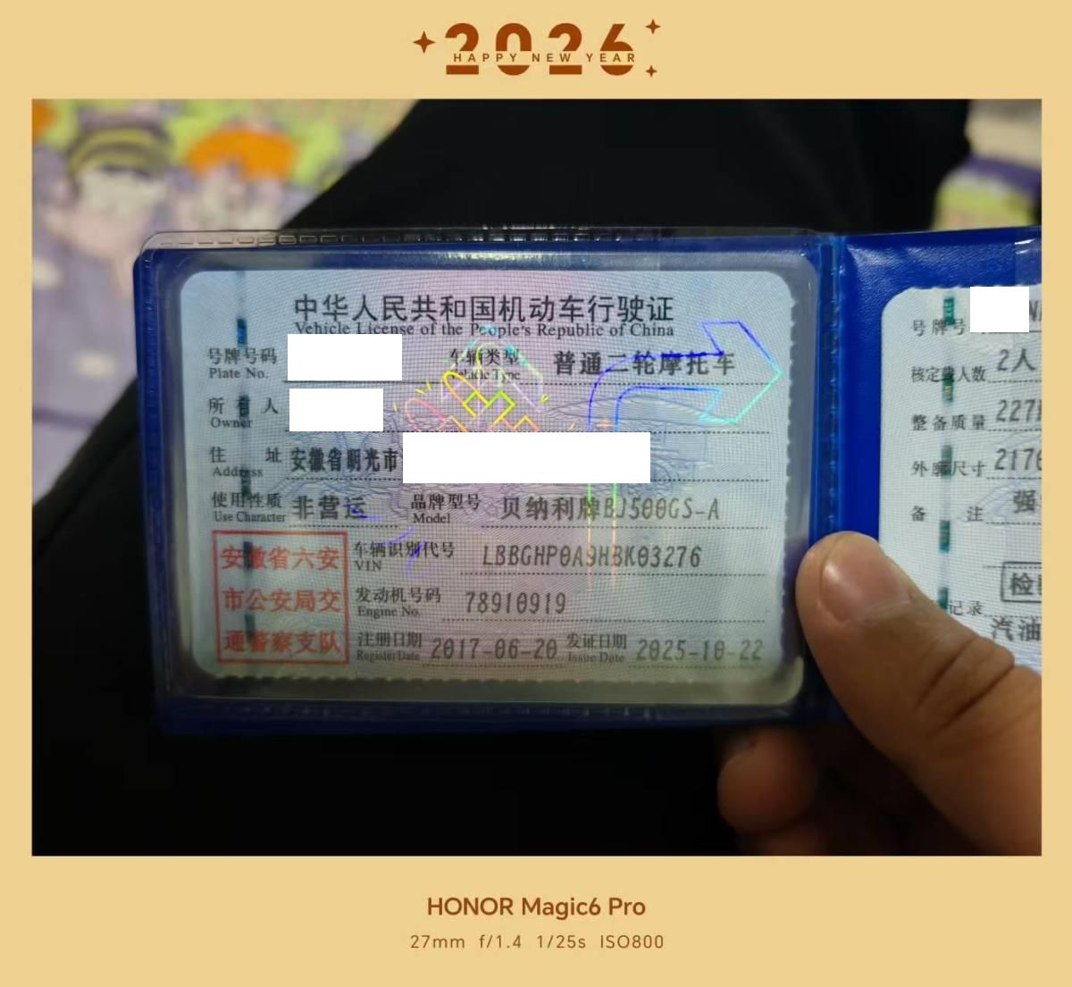 初次登记日期 2017-06-20 车辆名称 贝纳利
