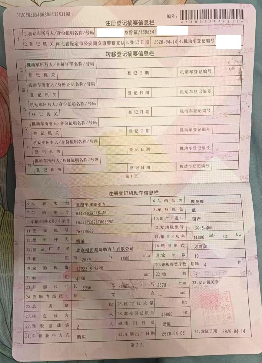车牌号 冀****** 品牌 解放