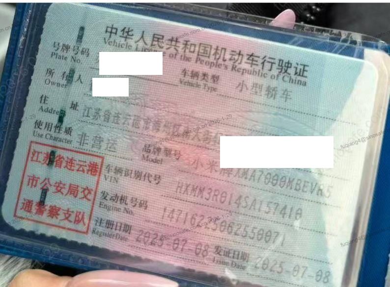 初次登记日期 2025-07-08 车辆名称 小米汽车 小米