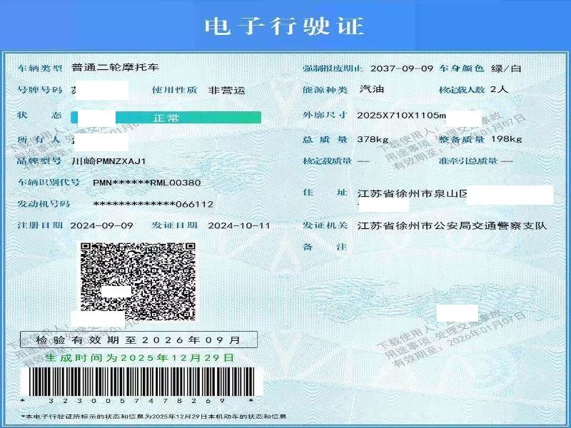 初次登记日期 2024-09-09 车辆名称 川崎牌