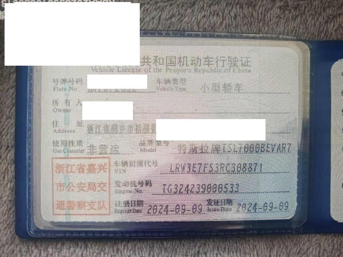 初次登记日期 2024-09-09 车辆名称 特斯拉 Model