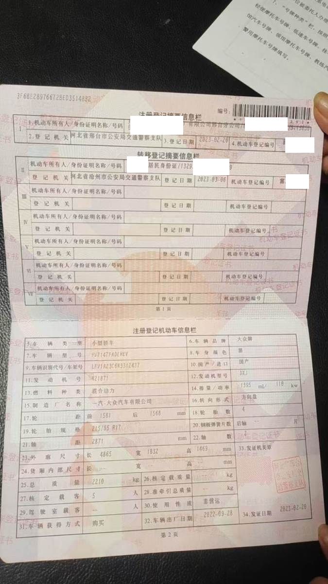 初次登记日期 2023-02-20 车辆名称 大众 迈腾