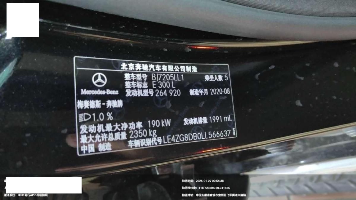 初次登记日期 2020-08-26 车辆名称 奔驰E级