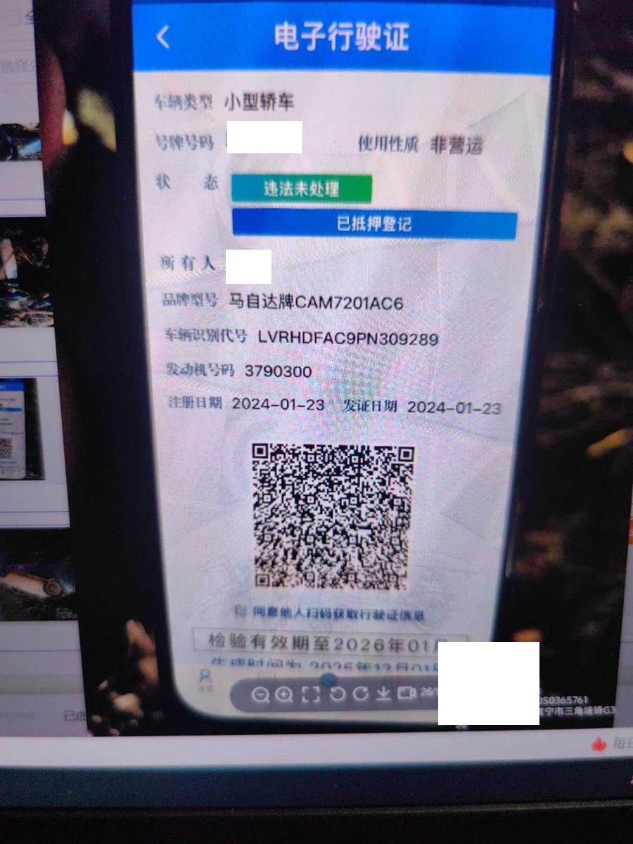 初次登记日期 2024-01-23 车辆名称 马自达3 昂克赛拉