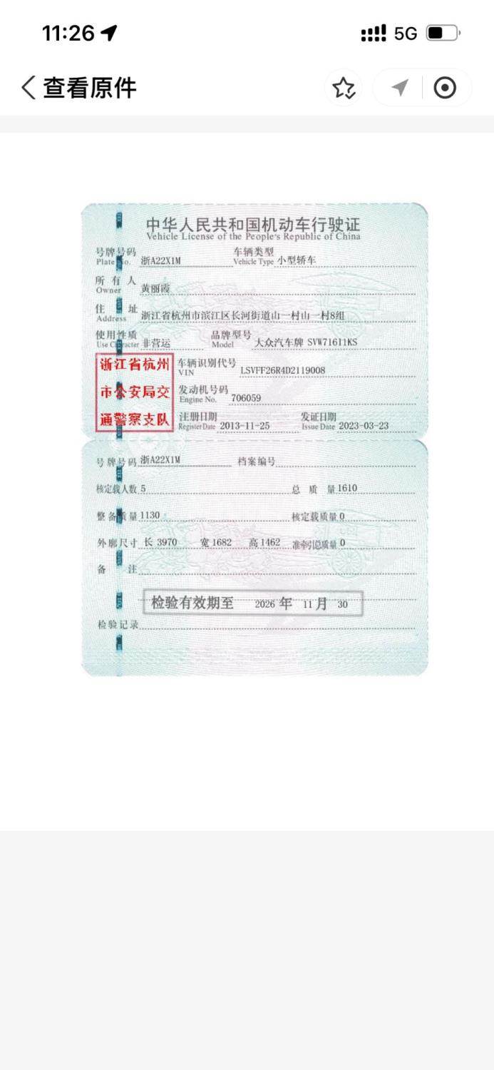 车牌号 浙****** 品牌 大众
