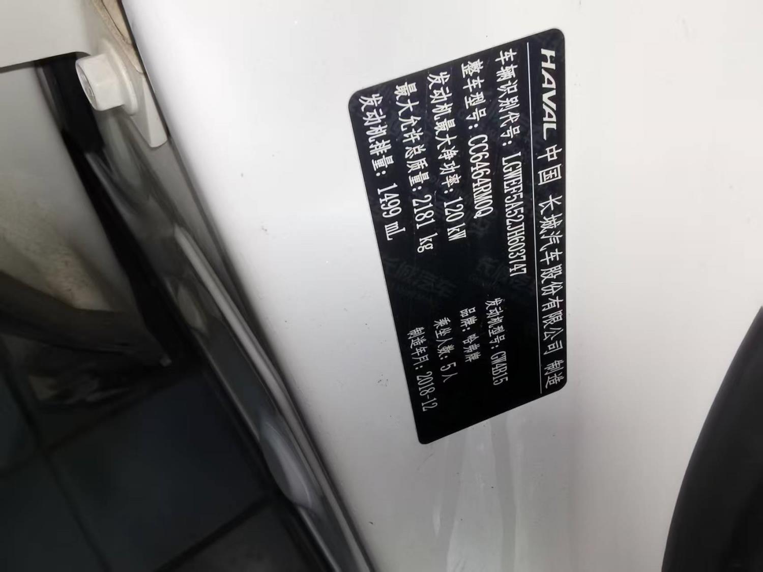 初次登记日期 2019-01-05 车辆名称 哈弗H6