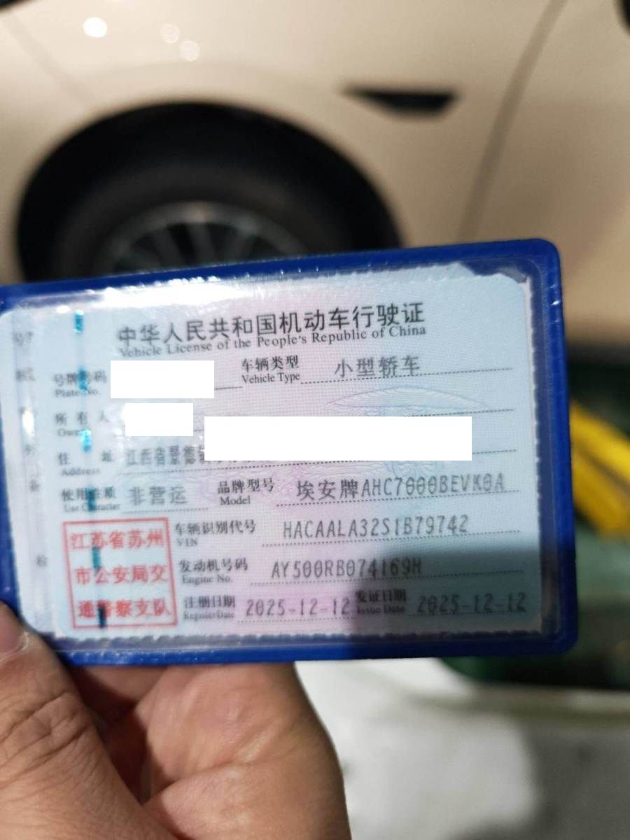 初次登记日期 2025-12-12 车辆名称 埃安牌