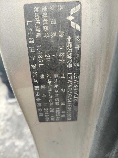 初次登记日期 2018-06-27 车辆名称 五菱汽车 五菱荣光V