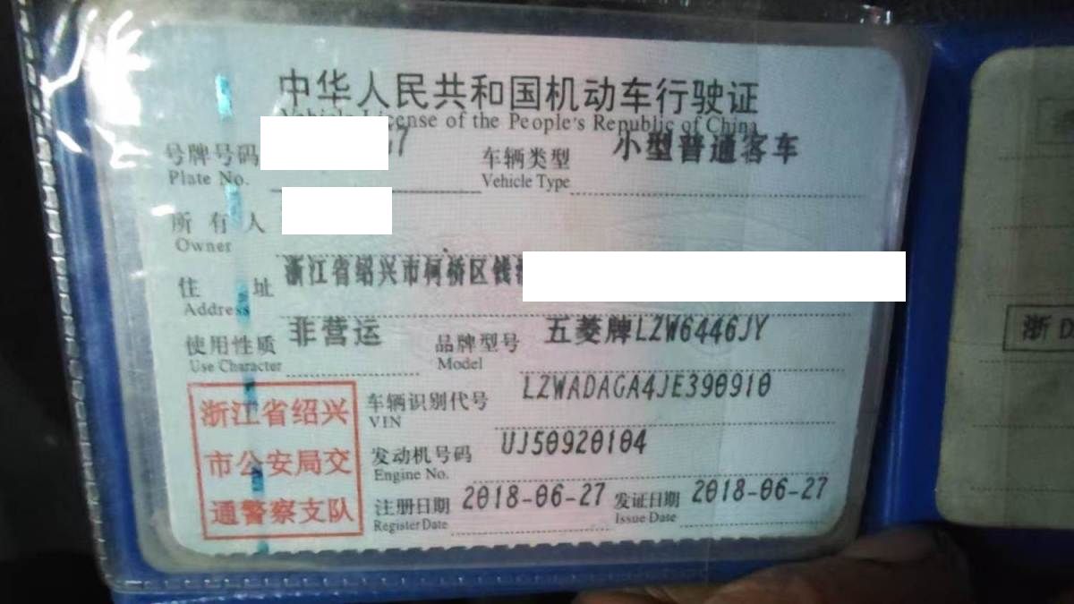 车牌号 浙****** 品牌 五菱