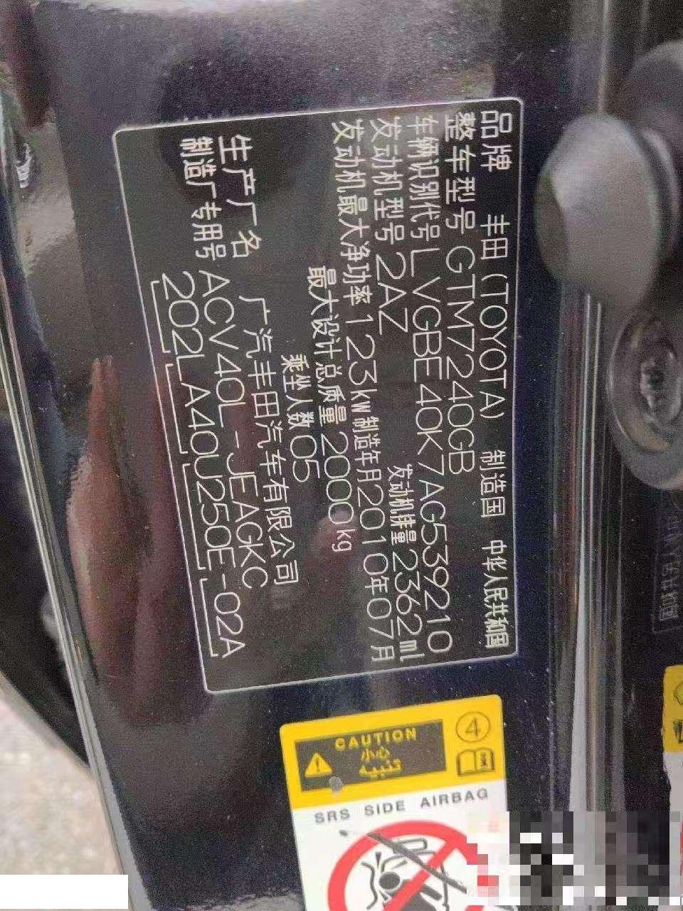 初次登记日期 2010-09-09 车辆名称 丰田 凯美瑞