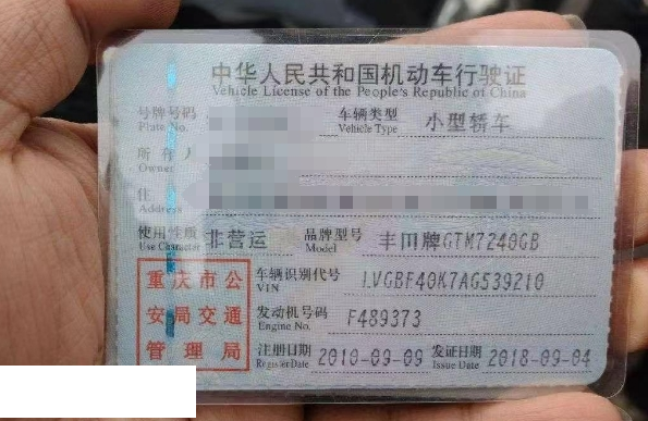 车牌号 渝****** 品牌 丰田